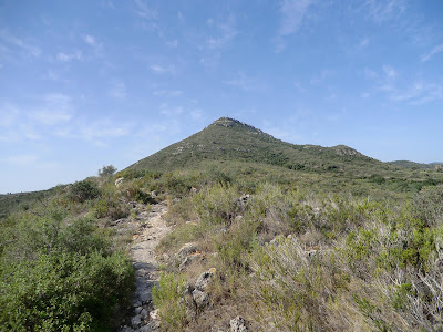AUNQUE HAY BAJADA QUE VA DIRECTA A UNA ERMITA RUTH ESTA TAN SATIFESCHA DE VOLVER A ANDAR QUE HACE LA RUTA MÁS LARGA POSIBLE. SI NO LA PARO NOS VAMOS A SANT CARLOS DE LA RÀPITA.